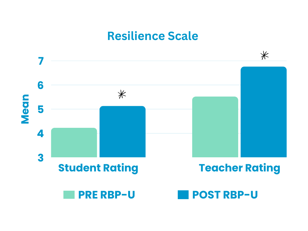 Starting in 2015, the RBP was implemented in schools serving economically marginalized communities, and a randomized trial with 169 students (4th–6th grade) showed significant improvements in resilience-related skills for students who completed the program